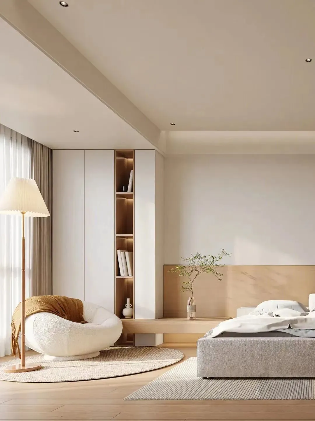 运用奶油白渲染卧房主题墙,赋予温kaiyun登录入口 开云平台网站馨柔美的体验。无主灯设计搭配超大面落地窗,通透感和空间感都能很好的拿捏住了,整个卧室营造出了慵懒、舒适又放松的空间氛围。