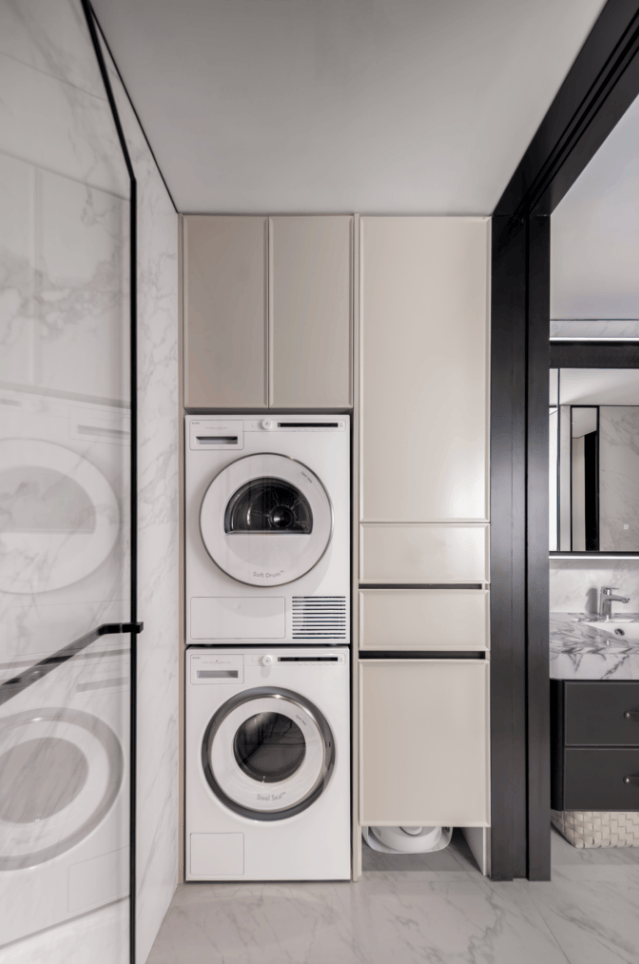 为165㎡以上户型配置独立家政间,并全线选用瑞典百年品牌ASKO洗烘设备,规划洗、烘、熨、藏一站式高效动线,让家务打理成为从容、优雅的日常仪式。