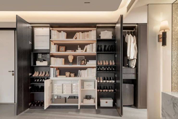 功能定制!项目在硬装阶段就为业主可能需要的功能进行硬件预埋。如提供从整体收纳到嵌入化妆台,mini bar的多元方案。