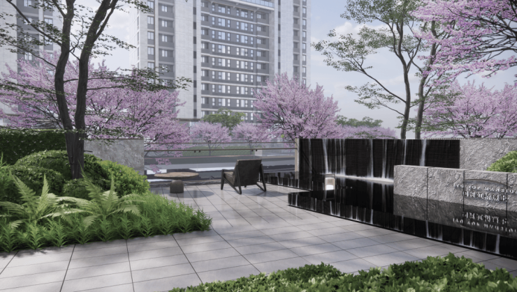 社区内部拥有两条天然Y型水系,国贸因地制宜,落地海洋美学的“海上森屿”概念,打造约19万方未来岛屿社区。